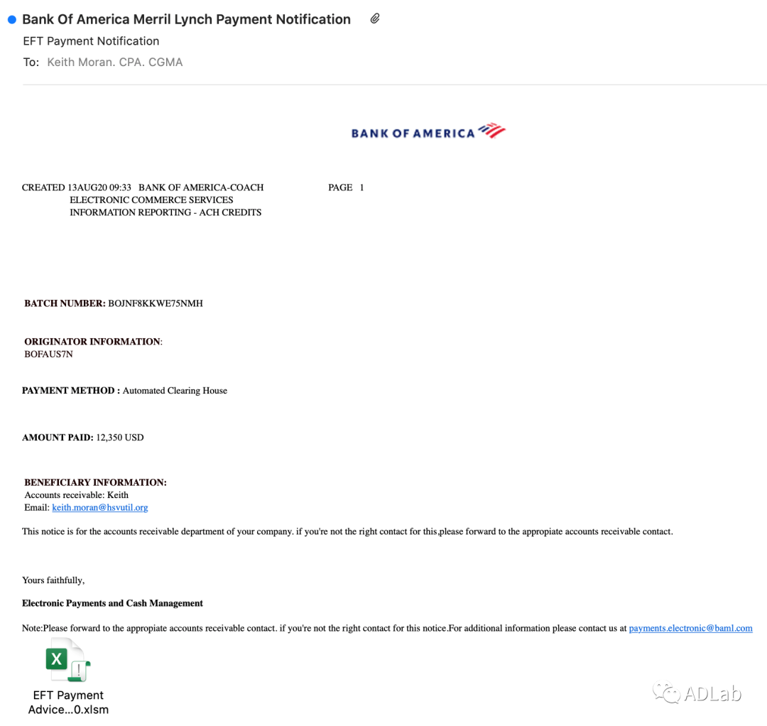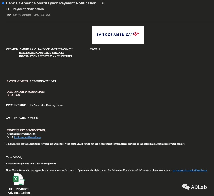 ´Ë´Î¹¥»÷ʼÓÚÒ»·âδȪԴαװ³É¡°ÃÀ¹úÒøÐС±µÄ´¹ÂÚÓʼþ£¨¼ûͼ17£©£¬£¬´ËÓʼþÊÇ·¢Ë͸øÃÀ¹ú°¢À°ÍÂíÖݺà´Äά¶ûÊй«¹²ÊÂÒµ¹«Ë¾¡°HuntsvilleUtilities¡±µÄÔ±¹¤µÄ¡£¡£¡£¡£Õû¸öÓʼþ¿´ÆðÀ´ÏñÊÇÒ»¸ö¸¶¿î֪ͨÕ˵¥Óʼþ£ºÓʼþÒÔ¡°ÃÀ¹úÒøÐÐÃÀÁÖ¸¶¿î֪ͨ¡±ÎªÖ÷Ì⣬£¬¡°µç×ÓתÕ˸¶¿îÕ˵¥-00130820¡±ÎªÓÕ¶üÎĵµÃû³Æ£¬£¬ÕýÎÄÖмòÆÓÐÎòÁËÕ˵¥µÄÖ§¸¶·½·¨ºÍÐèÒªÖ§¸¶µÄ½ð¶î£¬£¬ÔÚÓʼþµÄĩβ»¹ÌáÐÑÕâ·âÓʼþÊÇ·¢Ë͸ø¸Ã¹«Ë¾µÄÓ¦ÊÕÕ˿·Ö¡£¡£¡£¡£