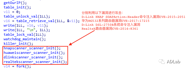ΪÁËÕÆÎÕ¸ü¶àµÄÐÅÏ¢£¬£¬ÎÒÃǼӴóÁ˶ԸÃ×é֯ʹÓõÄÎïÁªÍø½©Ê¬µÄÍøÂ磬£¬¹ØÁª³ö1384¸ö¸Ã×é֯ʹÓõĹ¥»÷Ñù±¾£¬£¬²¢Í¨¹ýADLabÎïÁªÍø×Ô¶¯»¯ÆÊÎöƽ̨¶ÔÕâЩÑù±¾¾ÙÐÐ×Ô¶¯»¯ÆÊÎö£¬£¬½øÒ»²½¹ØÁª³öÁË100¶à¸öC&CЧÀÍÆ÷¡£¡£¡£¡£ÆÊÎöЧ¹ûÅú×¢£¬£¬¸Ã×éÖ¯ÒÔÍù¼¸Äê¾³£Ê¹ÓûªÎªHG532ϵÁзÓÉÆ÷Îó²îCVE-2017-17215¡¢°®¶ûÀ¼¹«Ë¾¡°Eir¡±µÄD1000µ÷ÖÆ½âµ÷Æ÷TR064ЧÀÍÎó²îCVE-2016-10372¡¢Realtek·ÓÉÆ÷Îó²îCVE-2014-8361¡¢D-Link Devices HNAP SOAPAction-HeaderÏÂÁî×¢ÈëÎó²îCVE-2015-2051¡¢D-Link DSL-2750B ϵͳÏÂÁî×¢ÈëÎó²îµÈÖ÷Á÷µÄÎïÁªÍø×°±¸Îó²î¹¥»÷²¢¿ØÖÆ×°±¸¡£¡£¡£¡£Í¼5ÊÇij¸öÑù±¾µÄ¹¥»÷´úÂëÆ¬¶Ï¡£¡£¡£¡£