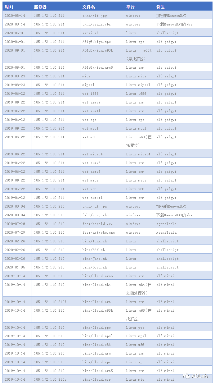 ÖÁ´Ë£¬£¬Ê¹ÓÃÒÔÉÏÒªÁìÎÒÃÇÒѾÎÞ·¨ÕÒ³ö¸ü½øÒ»²½µÄÏßË÷£¬£¬¿ÉÊÇÎÒÃÇ»ñµÃÁ˸ü¶àÑù±¾ºÍºÚ¿ÍµÄ»î¶¯Ê±¼äÐÅÏ¢¡£¡£¡£¡£Òò´Ë£¬£¬ÎÒÃÇת¶ø¶Ô8Ô·ݹ¥»÷»î¶¯µÄÁíÍâÁ½¸ö´æ´¢Ð§ÀÍÆ÷£¨IP:185.172.110.210 ºÍ185.172.110.214£©¾ÙÐÐÆÊÎö£¬£¬²¢ÕÒµ½ÁË¡°º£¶¾Éß¡±¶ÔÕâÁ½Ì¨Ð§ÀÍÆ÷µÄʹÓüͼ£¬£¬±í¸ñ2ΪÎÒÃÇÕûÀí³öÀ´µÄ¶ñÒâ´úÂëÉÏ´«¼Í¼¡£¡£¡£¡£