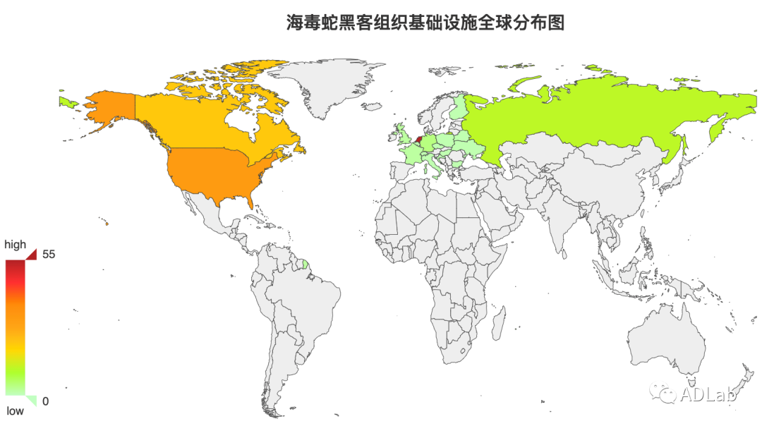 ¡°º£¶¾Éß¡±ºÚ¿Í×éÖ¯³ÖÓдó×Ú¶ñÒâÓòÃûºÍÓÃÓÚÍйܶñÒâÎļþµÄÐéÄâÖ÷»úµÈÍøÂç»ù´¡ÉèÊ©£¬£¬ÎÒÃǶÔÕÆÎյĸúڿÍ×éÖ¯³ÖÓеÄ142¸ö»ù´¡ÉèÊ©×ÊÔ´¾ÙÐÐÁ˵ØÀíλÖÃÂþÑÜͳ¼Æ£¬£¬·¢Ã÷ËüÃÇÖ÷ÒªÂþÑÜÔÚ21¸ö¹ú¼ÒºÍµØÇø£¬£¬ÆäÖÐÂþÑܽÏΪ÷缯µÄ¹ú¼ÒΪºÉÀ¼¡¢ÃÀ¹ú¡¢¼ÓÄô󡢶íÂÞ˹ºÍµÂ¹ú£¬£¬ÓÈÒÔ¡°ºÉÀ¼¡±ºÍ¡°ÃÀ¹ú¡±×îΪ÷缯£¬£¬»®·ÖÊÇ55¸öºÍ31¸ö£¬£¬Í¼9ÊÇÎÒÃÇ»æÖƵĺ£¶¾ÉߺڿÍ×éÖ¯»ù´¡ÉèʩȫÇòÂþÑÜͼ¡£¡£¡£¡£